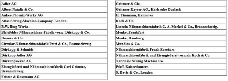 Vervollständigt werden die Informationen mit dem Hinweis auf die ursprünglichen Hersteller der Nähmaschinen