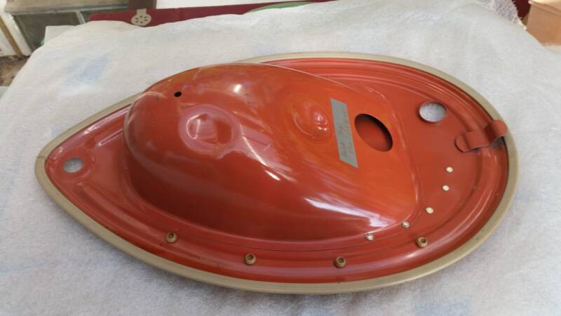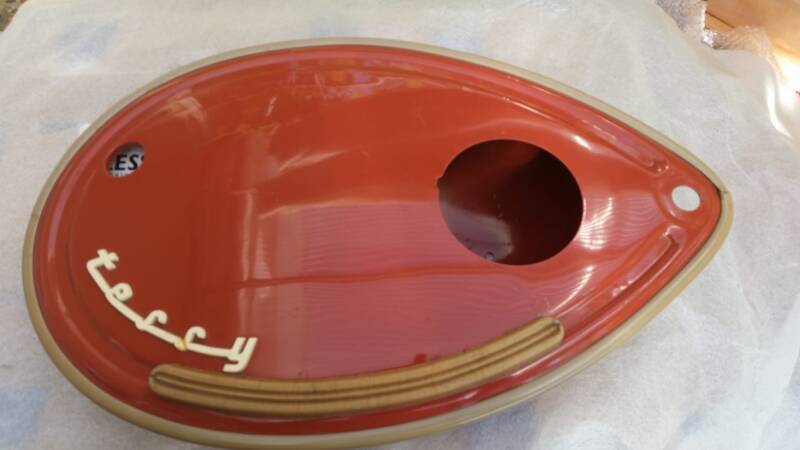 Original Seitendeckel aus einer alten Triumph Werkstatt.