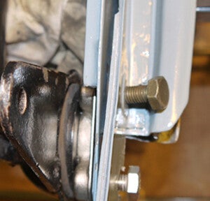 Die oberen Bohrungen im Teil 389 um mindestens 5 mm und die unteren im Rahmen um mindestens 10 mm.