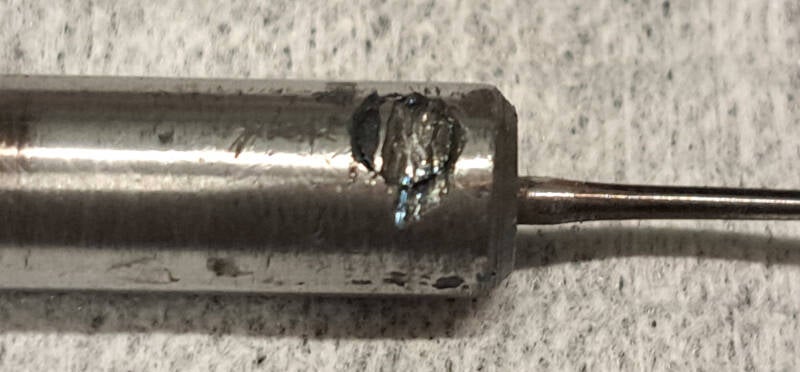 Letzteres war nicht nötig, da mit etwas Glück beim aufbohren die Mitte der Schraube gefunden wurde und das noch vorhandene Gewinde mit der größten Stufe des Gewindebohrersatzes nachgeschnitten werden konnte.