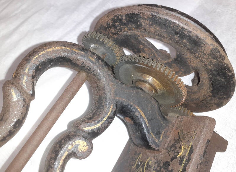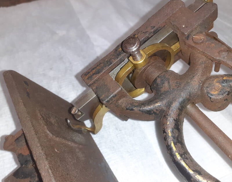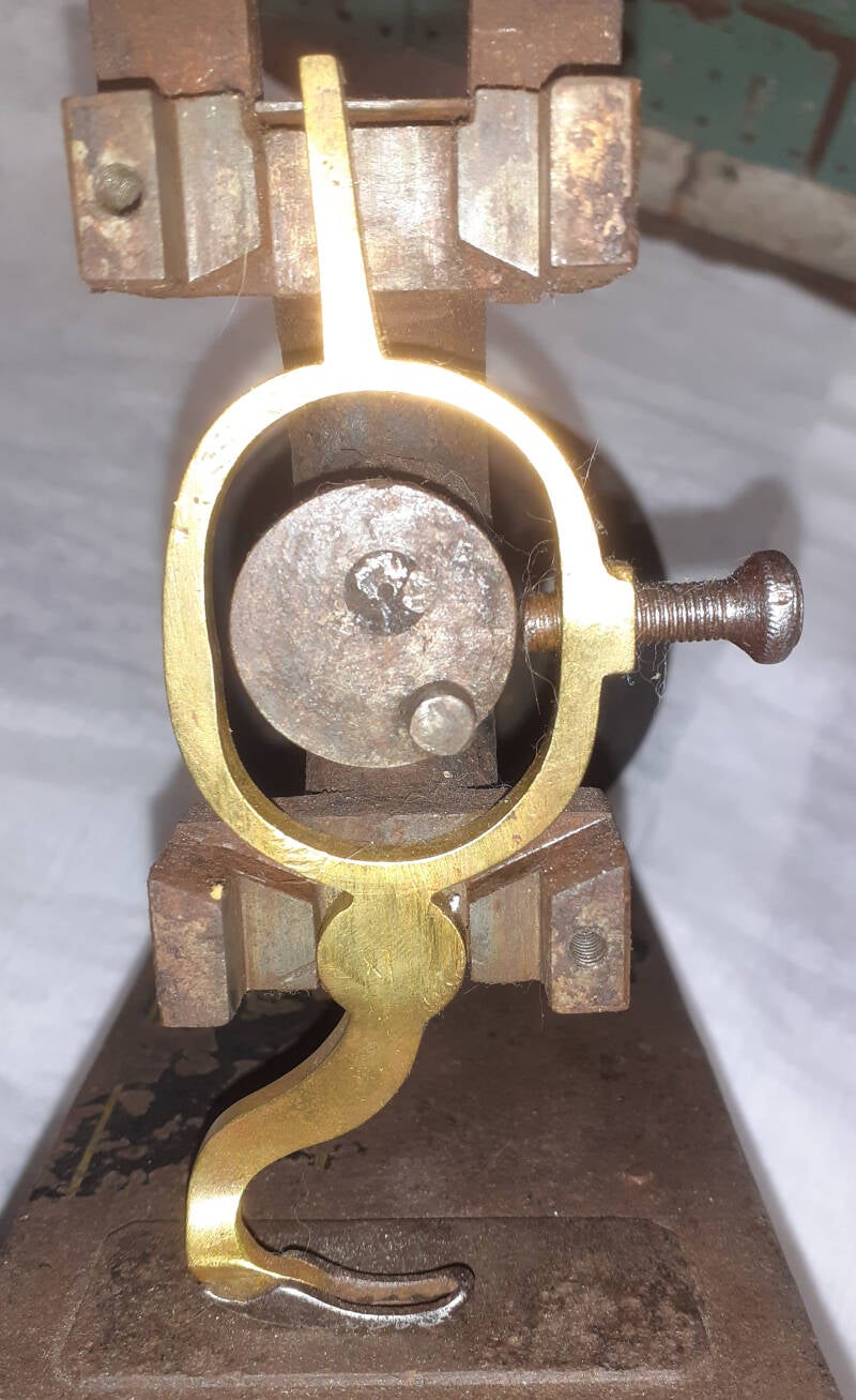 Vergleiche ergaben bisher keine eindeutige Zuordnung, zumal die Abmessungen mit Höhe 170, Breite Grundplatte 85 und die Länge einschließlich Handrad 245 mm aus dem vergleichbarem Rahmen fallen.